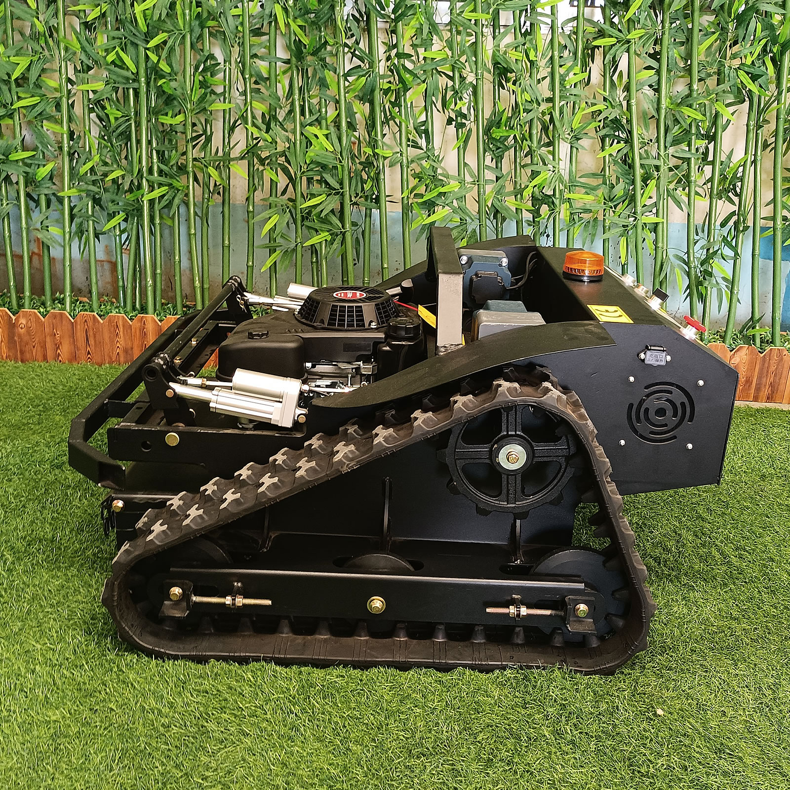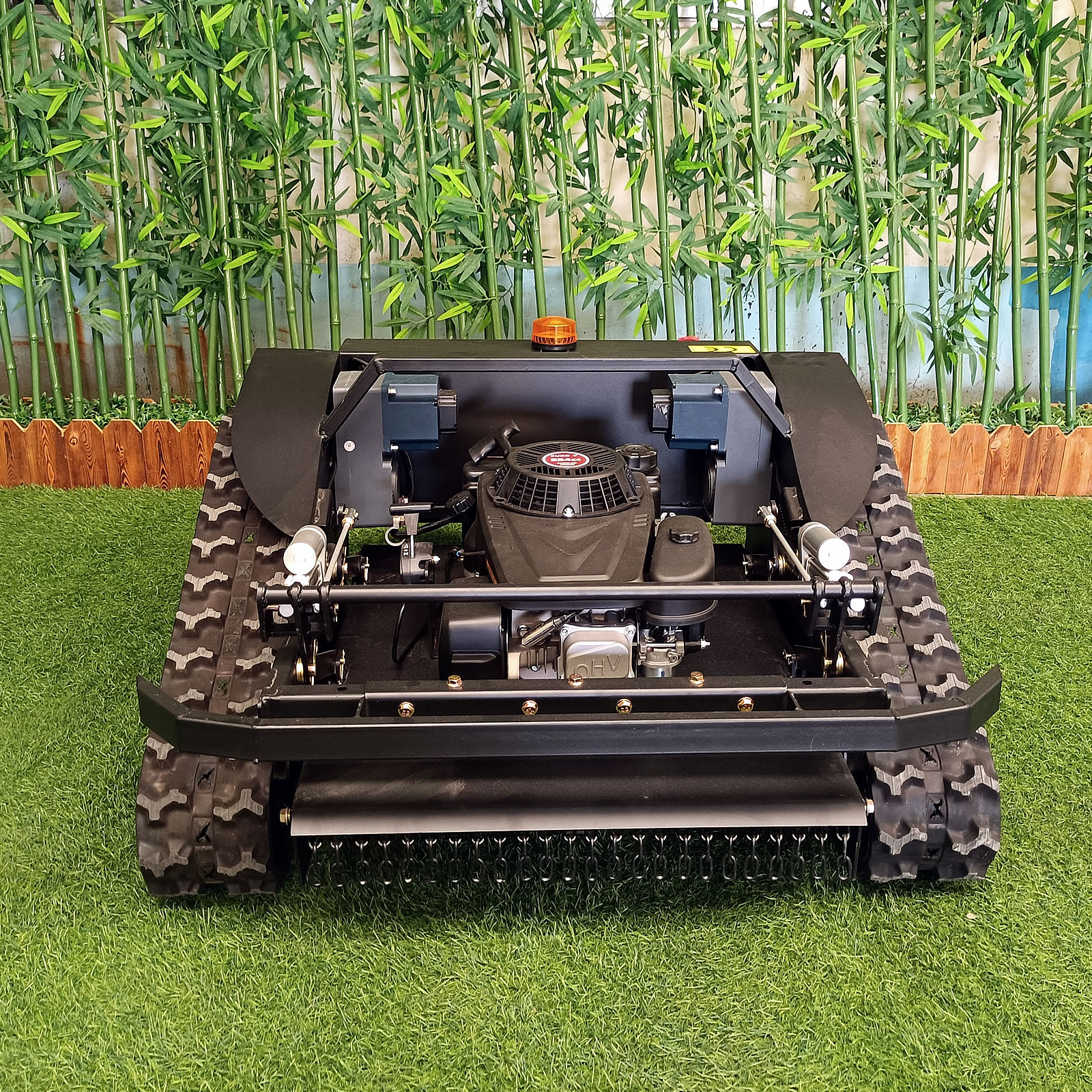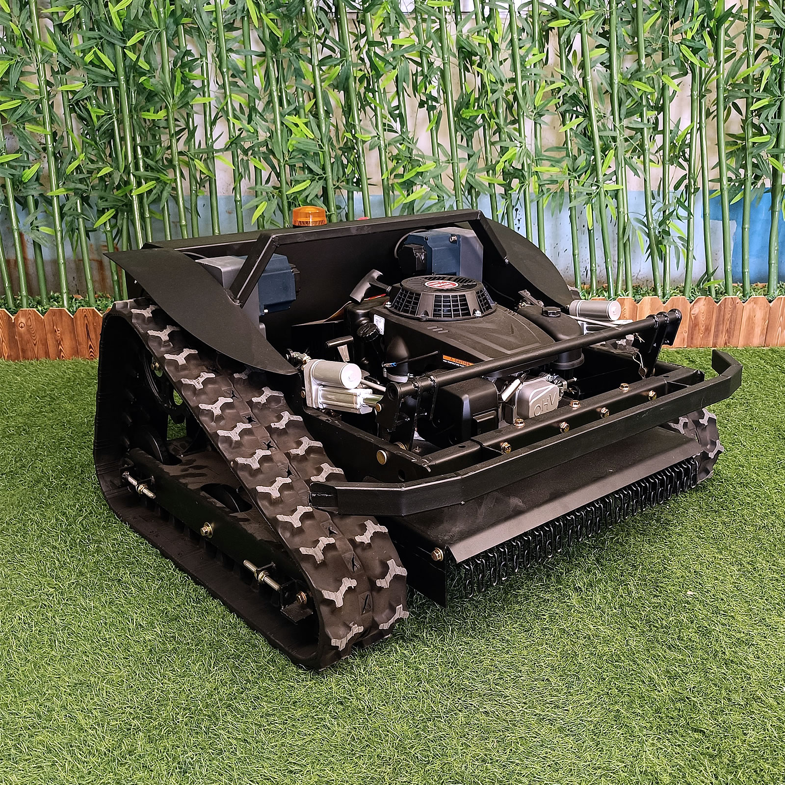 Dálkové ovládání chrání obsluhu, bez akumulátorový motor s převodovkou zajišťuje výkonné a efektivní sekání.